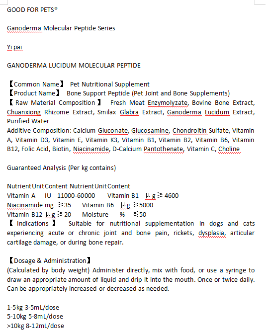 Suplementos ósseos e articulares para animais de estimação de alta demanda para preencher a lacuna “articular-osso同步修复 (reparo sincronizado)”. Os distribuidores estocam-no para atender clínicas e lojas especializadas, pois ele se alinha com a demanda do consumidor por soluções de reparo ortopédico direcionadas – superando os suplementos genéricos em diferenciação de mercado.