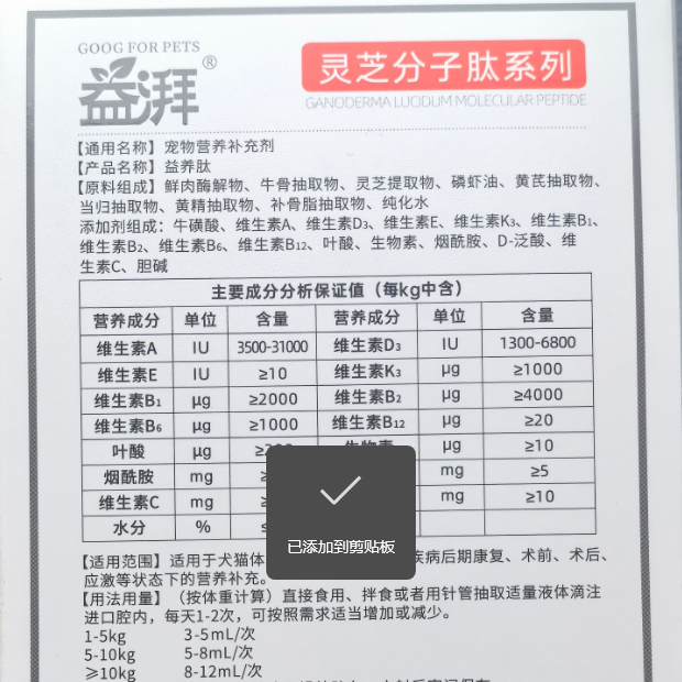 Como parte de nossa extensa série de suplementos nutricionais para animais de estimação Ganoderma , este produto aproveita nossa extração patenteada de Ganoderma lucidum e tecnologia de enzimólise de carne fresca para fornecer biodisponibilidade e eficácia ideais para animais de estimação em recuperação.