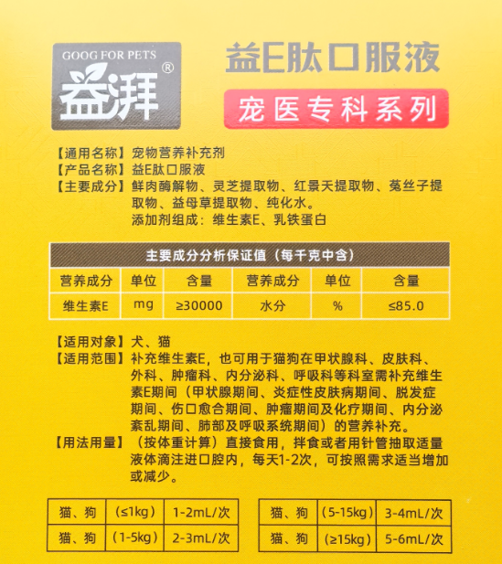 A Yipai Biotechnology apresenta uma fórmula especializada de suporte respiratório veterinário desenvolvida para cães e gatos que necessitam de suplementação de vitamina E em departamentos de medicina respiratória. Nosso avançado multivitamínico para animais de estimação de força clínica combina vitamina E de grau USP com extrato de Ganoderma lucidum para fornecer suporte abrangente ao sistema respiratório e proteção antioxidante.